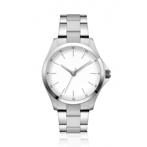 Orologio essenziale con bracciale in acciaio adatto a qualsiasi polso.