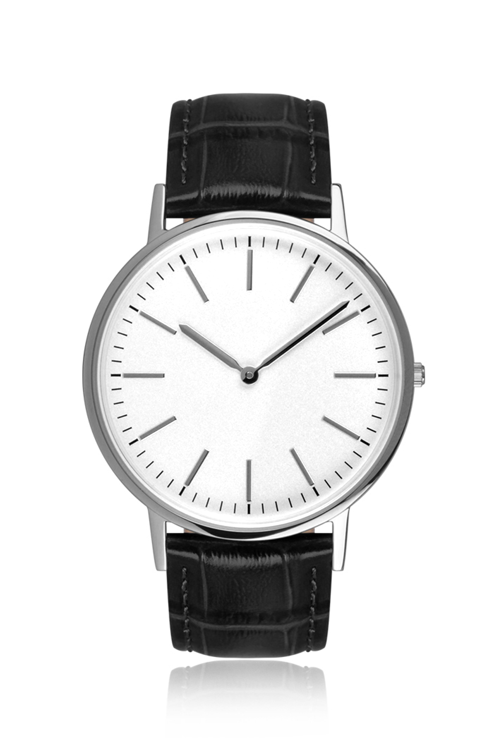 Cassa acciaio - Finitura lucida, acciaio - Diametro ø 40 mm - Altezza cassa 5,5 mm - Vetro minerale - Apertura quadrante ø 34 mm - Quadrante opaco, indici applicati - Corona acciaio chiusa a pressione - Fondello acciaio chiuso a pressione - Movimento GL20 slim Miyota - Funzioni ore, minuti - Cinturino vera pelle stampa cocco, 20/18 mm - Fibbia acciaio - Water Resistant 3 ATM - Peso 36 gr.