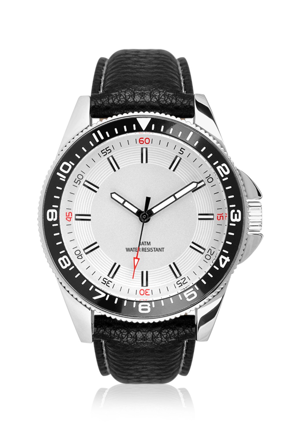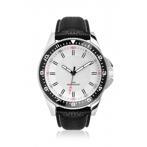 Cassa metallo - Finitura PNP lucida, topring alluminio - Diametro ø 44 mm - Altezza cassa 15 mm - Vetro minerale - Apertura quadrante ø 35 mm - Quadrante satinato, index applicati con inserto luminoso - Corona acciaio, chiusa a pressione - Fondello acciaio chiuso a pressione - Movimento 7T35 Miyota - Funzioni ore, minuti, secondi - Cinturino similpelle, 22/20 mm - Fibbia acciaio - Water Resistant 3 ATM - Peso 70 gr.