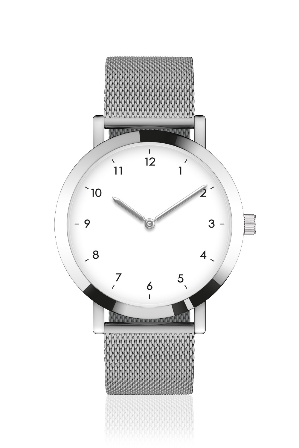 Un semplice ma distinto orologio con un bracciale acciaio maglia milano, con numeri arabi stampati