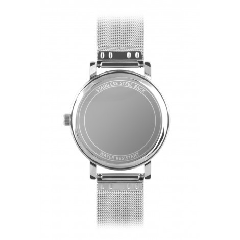 Cassa metallo - Finitura PNP lucida - Diametro ø 38 mm - Altezza cassa 8 mm - Vetro minerale - Apertura quadrante ø 34 mm - Quadrante con numeri arabi stampati - Corona acciaio chiusa a pressione - Fondello acciaio chiuso a pressione - Movimento PC20 TMI - Funzioni ore e minuti - Bracciale acciaio maglia milano, 18 mm - Fibbia acciaio - Water Resistant