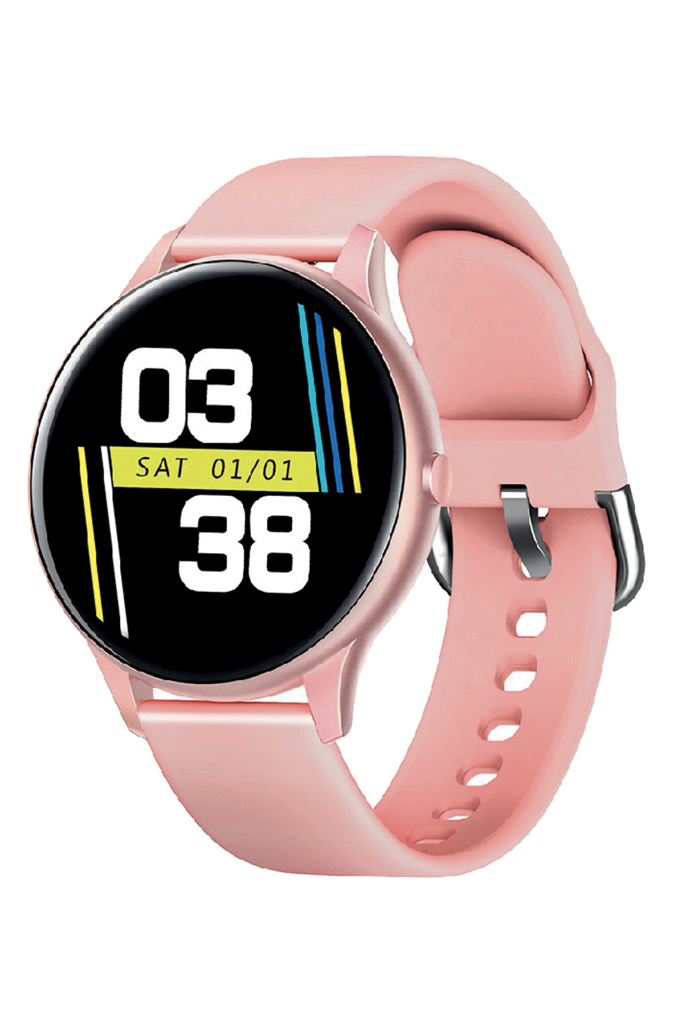Smartwatch con ampio display da 1,3 pollici, cassa tonda da 45mm in ABS, batteria ad alte prestazioni che offre 15 giorni di durata in standby. Disponibile con cinturino in silicone o bracciale milano in acciaio. Rileva la temperatura corporea. Impermeabile fino a classe di resistenza all'acqua IP68. Compatibile con iOS e Android. Ideale per il monitoraggio dello stato di salute.