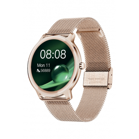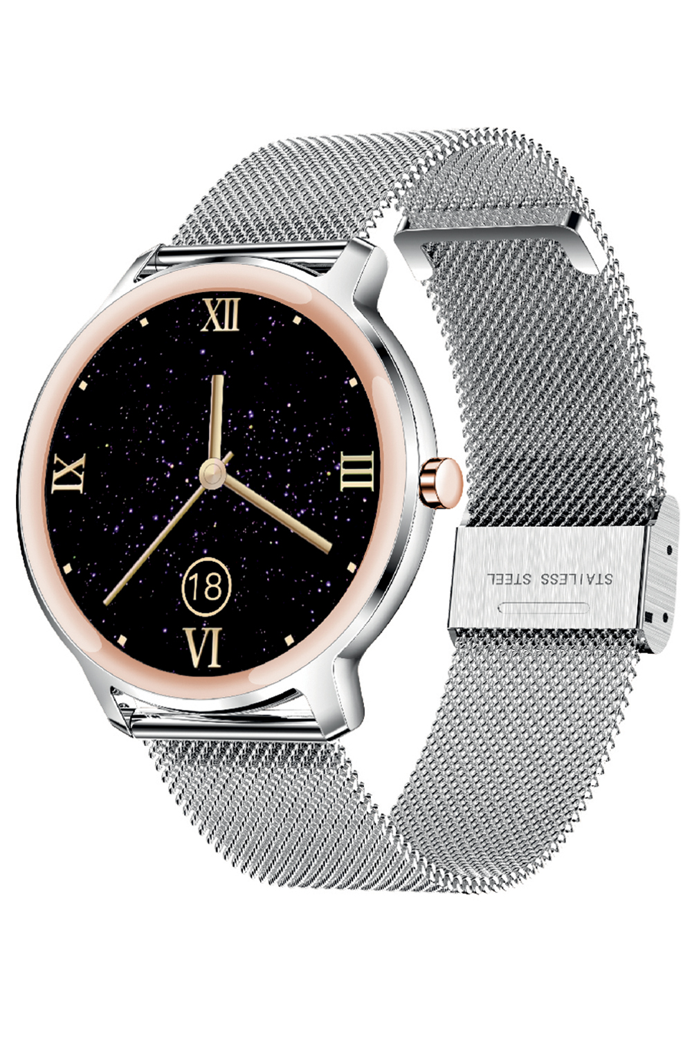 Smartwatch con cassa in metallo sottile (7,3 mm) e dal design elegante. Bracciale in acciaio maglia Milano. 30 giorni di durata della batteria in standby.